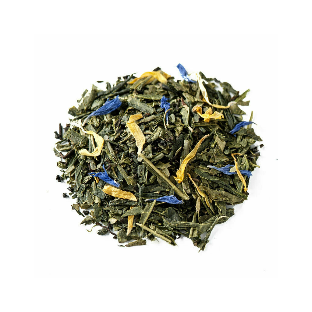 Thé vert fleuri avec du rooibos vert non torréfié, riche en vitamines