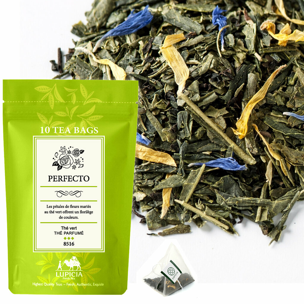 Le thé Perfecto est une création audacieuse basée sur blend unique qui marie la clarté des thés verts du Japon à la profondeur des thés noirs d'Inde, le tout sublimé par un parfum de fleurs éclatant. C'est le thé idéal pour ceux qui recherchent une tasse à la fois structurée, rafraîchissante et intensément parfumée.