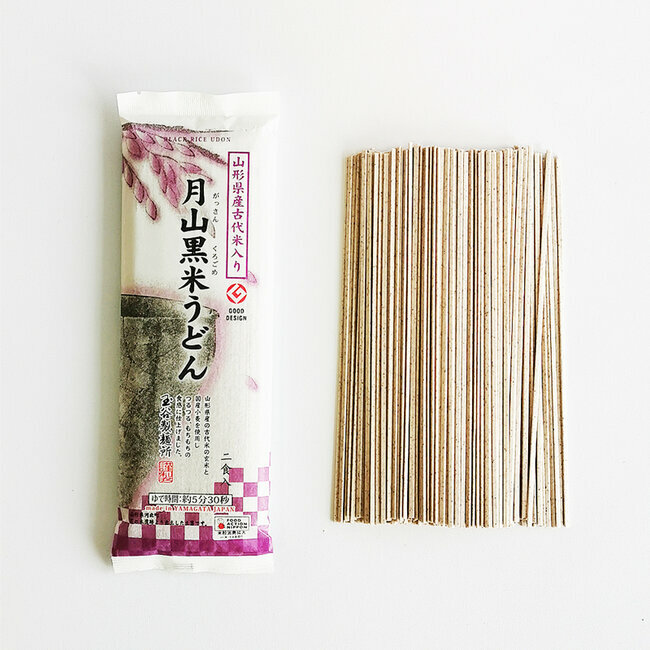 Les nouilles udon "KOKUMAI" ont été préparées avec de la farine de blé (87%) et de la farine de riz noir (11 %), ce qui leur donne cette jolie couleur naturelle violette. À la fois tendres et lisses, avec une texture très agréable, ces nouilles de qualité sont confectionnées avec un riz noir produit dans la préfecture de Yamagata répondant à des exigences très strictes. Ces nouilles sont naturelles, sans arômes, ni colorants ajoutés. Leur couleur est due au pigment du riz noir.