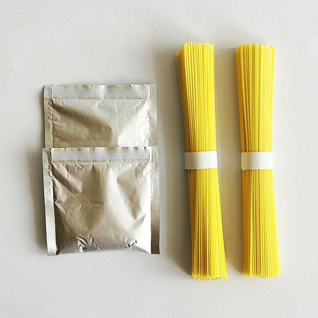 Nouilles ramen style « Tonkotsu » fabriquée dans la préfecture de Fukuoka (au sud du Japon) à base de blé et de légumes biologiques. La pâte a été préparée à la main selon la méthode « Shimabara Tenobe Somen », avec des produits naturels, sans additifs et présente une texture agréablement élastique. Crée en 1343 à Shimabaran dans la préfecture de Nagasaki, cette méthode de fabrication est l’une des plus ancienne et populaire au Japon. Retrouvez chez vous, les saveurs authentiques de Kyushu !