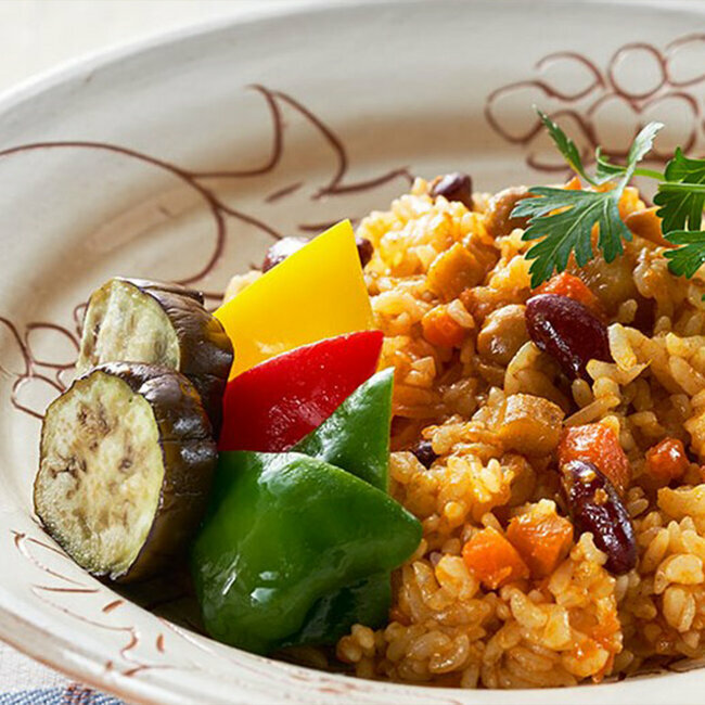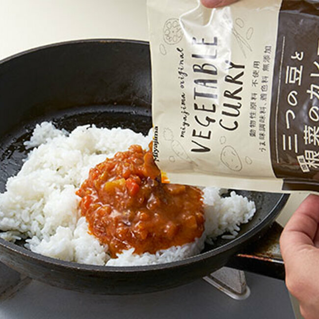 Carotte, oignon, pomme de terre, bardane séchée, racine de lotus, ail, huile de colza, purée de tomate, gros haricots rouge, haricots blancs, pois chiche, curry en poudre, fécule de pomme de terre, sel, pâte de gingembre, condiment à base de riz saccharifie, sauce de soja (soja, blé, sel), épices, extrait de levure.