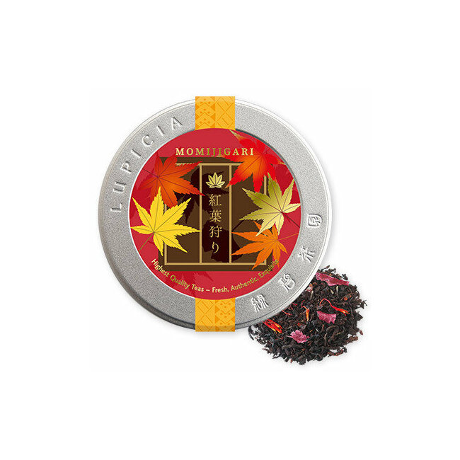 Thé noir d'Inde au parfum de la pomme et de l'abricot mélangé à des feuilles d’érable «momiji» et de carthame. Mélange de thés noirs d’Inde et du Vietnam, édition saisonnière, Momijigari évoque le magnifique dégradé de couleurs automnales des érables japonais, allant du jaune intense au rouge écarlate, aux nuances prune.