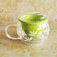 1 mug "Mon pote" 330ml Fabriqué avec un verre résistant à la chaleur. Très léger et tenant facilement dans votre main, il est accompagné d'un filtre à thé en silicone amovible.