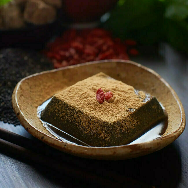 1 Tôfu sésame noir Dessert japonais (appelé également « gomadofu ») à base de sésame noir et à la texture légèrement élastique, semblable au tofu. Il est accompagné d’une poudre de soja à saupoudrer dessus. Très soyeux et frais en bouche, il viendra terminer à merveille vos repas ou vos pauses gourmandes.