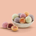 Chaque gourmandise associe un cœur fondant de pâte de fruits — framboise, cassis, abricot ou poire — à une fine couche de pâte d’amandes qui en sublime les saveurs. Le tout est ensuite délicatement enrobé de chocolat au lait et de chocolat blanc, coloré naturellement grâce à la poudre de framboise, la poudre de cassis, le jus de betterave ou le paprika. Pour parfaire l’ensemble, une légère finition de sucre glace vient adoucir la sensation sucrée tout en apportant une touche élégante et raffinée.
