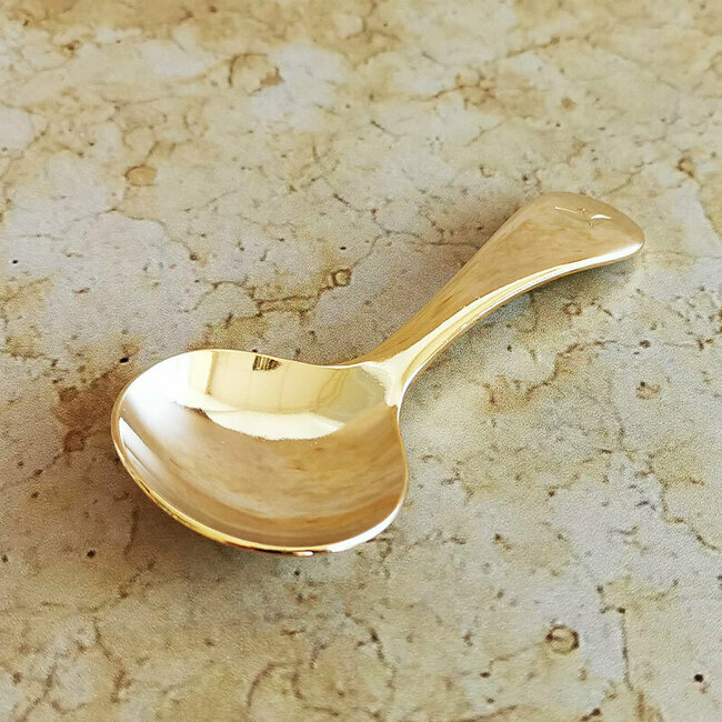 Cuillère doseur dorée en acier inoxydable pour mesurer la quantité de feuilles de thé nécessaires à la préparation d'une tasse. Généralement, une cuillère bien remplie correspond à une tasse de thé.