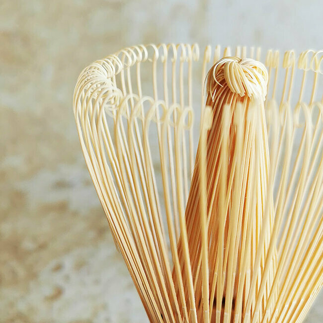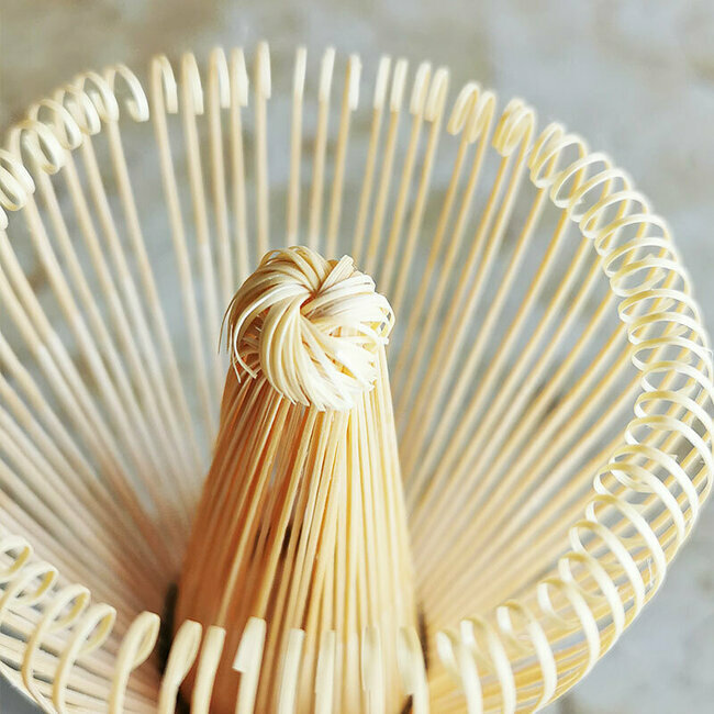 Le fouet à thé Matcha est un ustensile indispensable à la préparation du thé Matcha et est utilisé lors des cérémonies traditionnelles du thé, au Japon. Fabriqué en bambou, il est ciselé en 80 lamelles et va venir fouetter la poudre de thé avec l'eau chaude pour donner naissance au thé Matcha et éviter la formation de grumeaux.